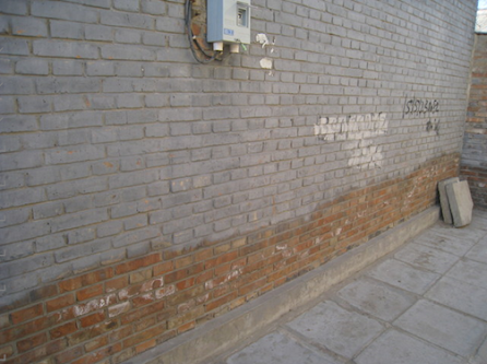 除了雨水浸濕造成牆壁發生病變外,地下濕氣也會往上竄升,讓壁面潮濕因而地上50cm內也常發生問題 郭博