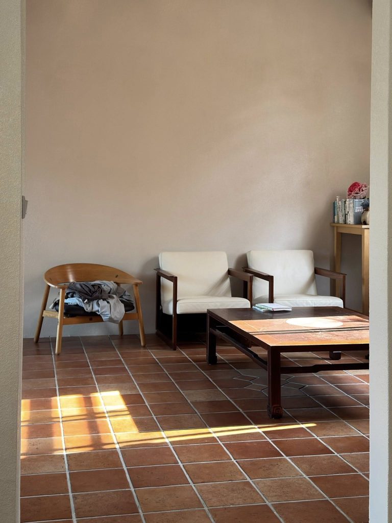 當晨曦與午後的自然光灑落,礦物材料特有的折射光影,讓空間氛圍變得無比舒適且沉靜。