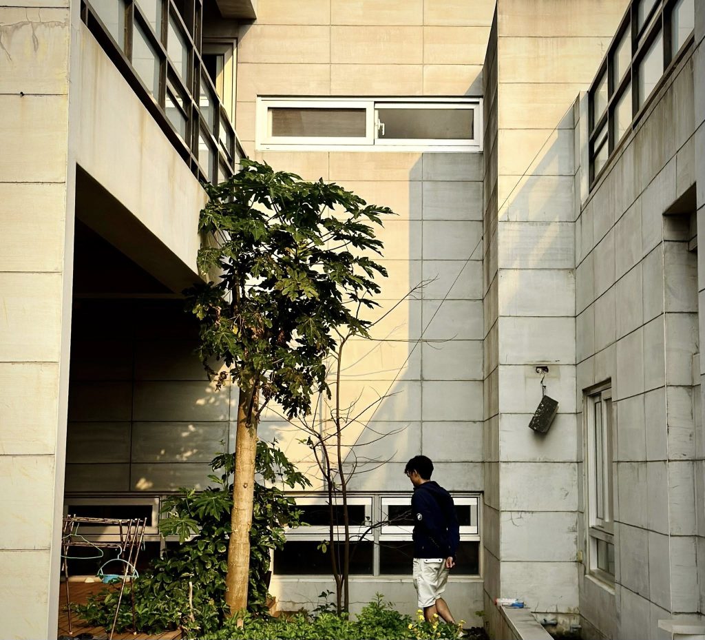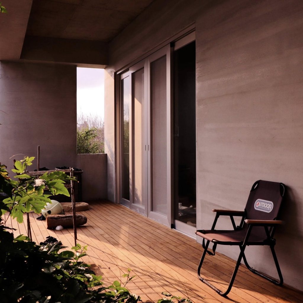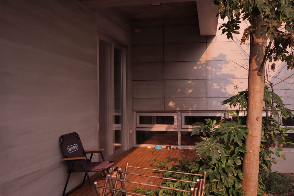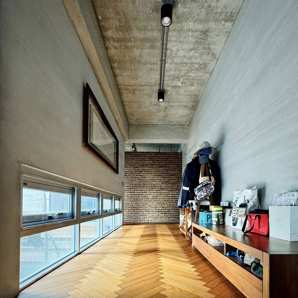 面對澎湖嚴峻的氣候考驗,李小姐大膽採用了當時全澎湖首創的工法:將「樂土防水粉」直接加入水泥砂漿層,在泥作粗批、粉光後,不另外上漆,直接作為建築的最終完成面!