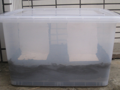 然後埋置在土裡 整個系統並放置於密封箱中 (模擬濕悶熱的環境)