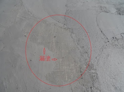 8.彈泥施工若塗抹不均,乾燥後將呈現顏色深淺不一並有沾粘的現象,且對後續施作的材,造成不良的影響,諸如水泥砂漿的龜裂、塗料不易乾燥。